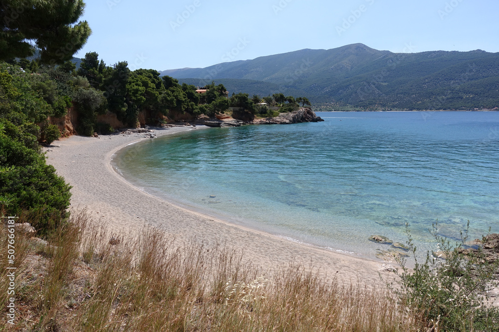 Small paradise beach of Prosili in Porto Germeno, Corinthian gulf, West Attica, Greece