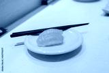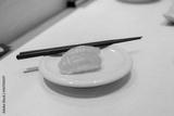 Tasty salmon sushi with chopsticks on the plate