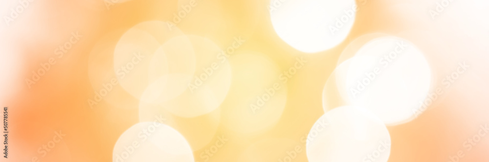 Summer orange sparkling glitter bokeh background, banner texture. Abstract defocused lights header. Wide screen wallpaper. Panoramic web banner with copy space for design