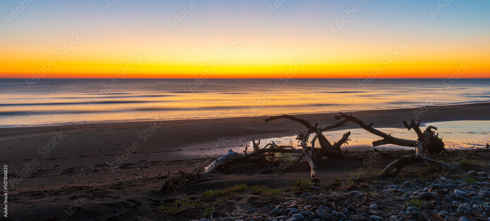 Colorful seashore at dawn time