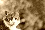 Ginger cat looking at camera on nature background.