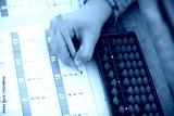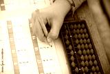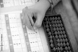 Child´s hand doing arithmetics with a Japanese abacus
