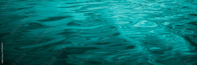 Blue-green water background. Reflection of light on the wavy surface of the water. Ripples. Beautiful teal background with copy space for design. Web banner. Wide. Panoramic.