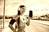 Woman training outdoors and using a smartphone to monitor her fitness progress. Young sports woman taking rest and checking results on smartphone app after urban work out.
