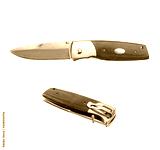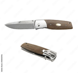 Pocket folding knife isolate on white back. Compact metal sharp knife with a folding blade.