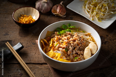 Tom Yum Noodles with Minced Pork.popular hot and sour soup in Thailand