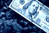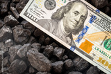 American money sticking out of a pile of coal, 100 dollar banknote, US mining concept, Rising coal prices, Environmental impact, National economy