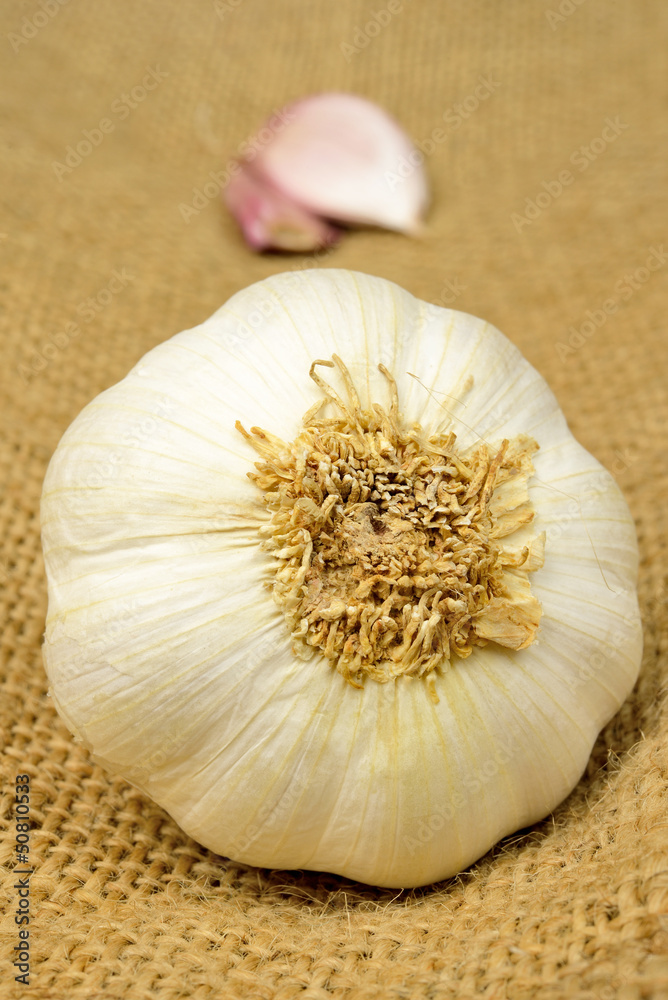 potato garlic on sack