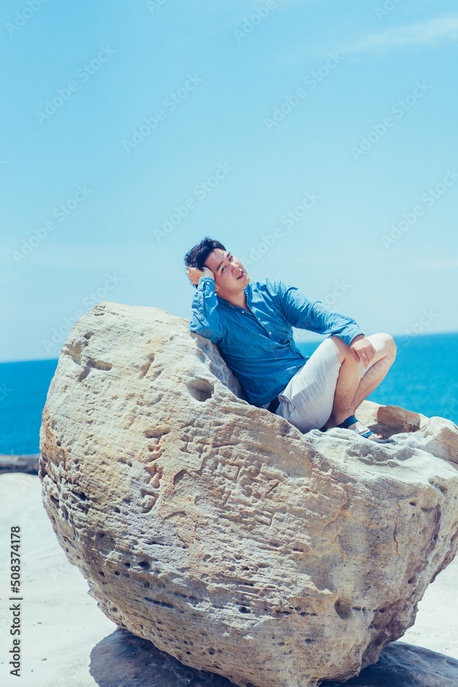 岩と男性