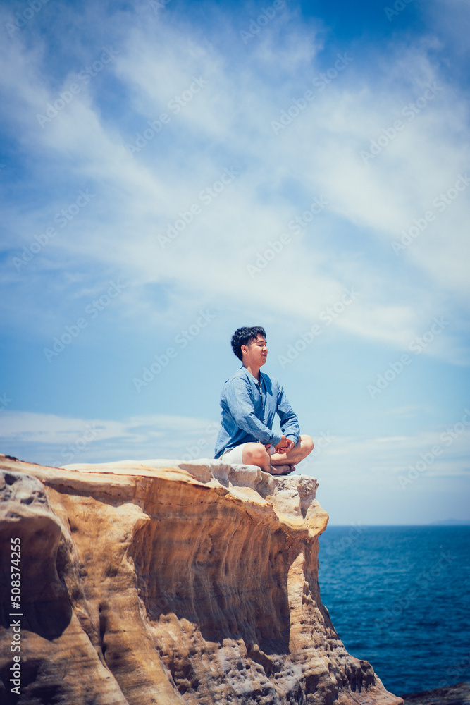岩と男性