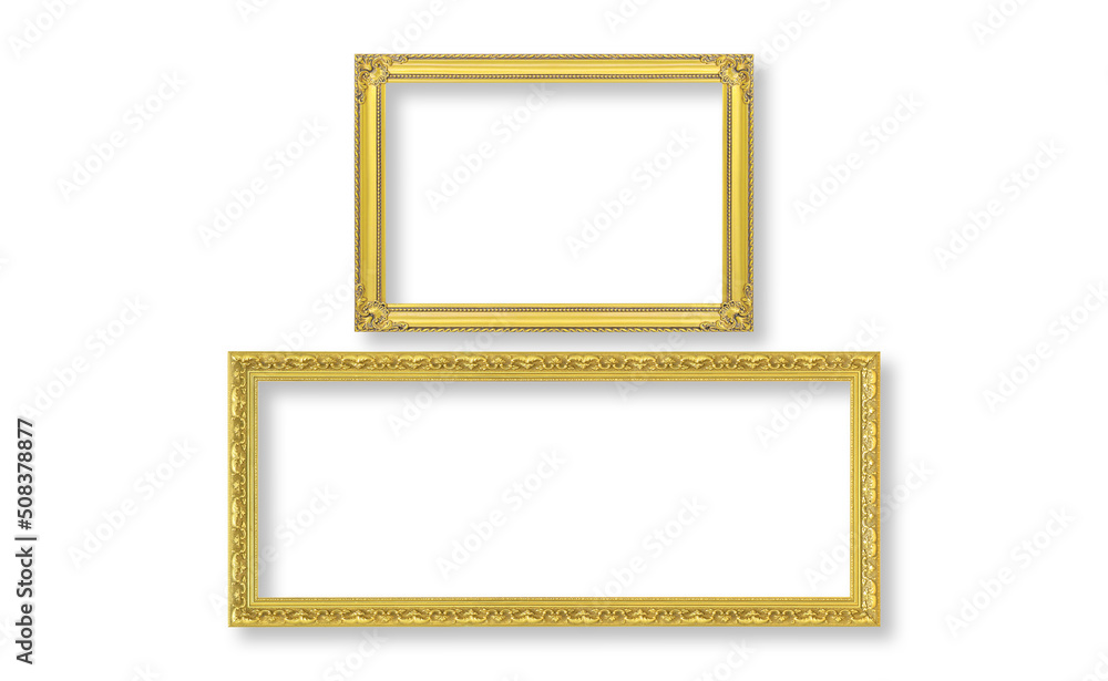 The antique gold long frame isolated on white background ,clipping path included use for design.