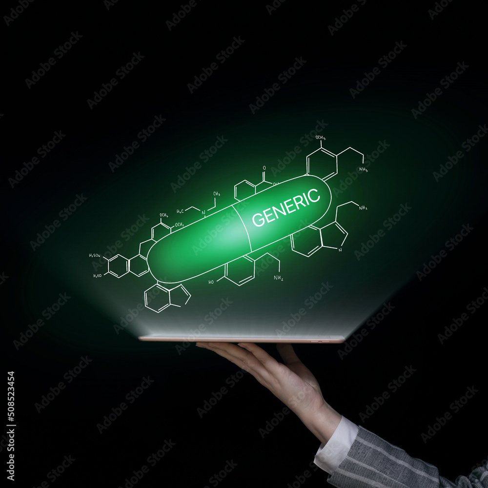 cheap analogues of original medicines, chemical formula in the hands of a businessman of generics
