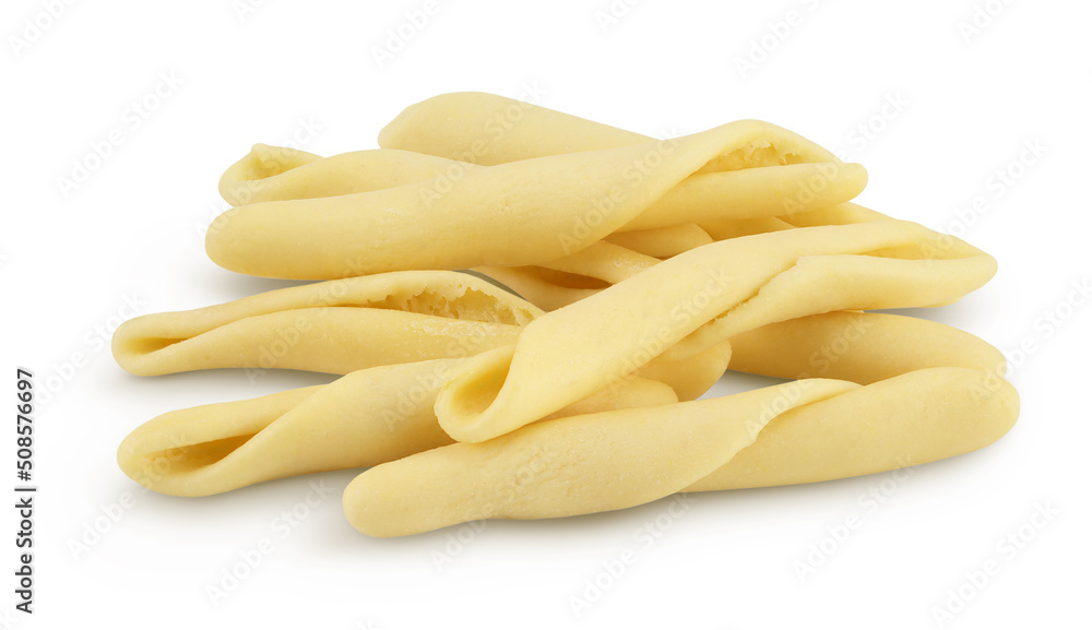 Typical Calabrian pasta called Maccheroncini also known as Maccheroni isolated on white background with full depth of field.