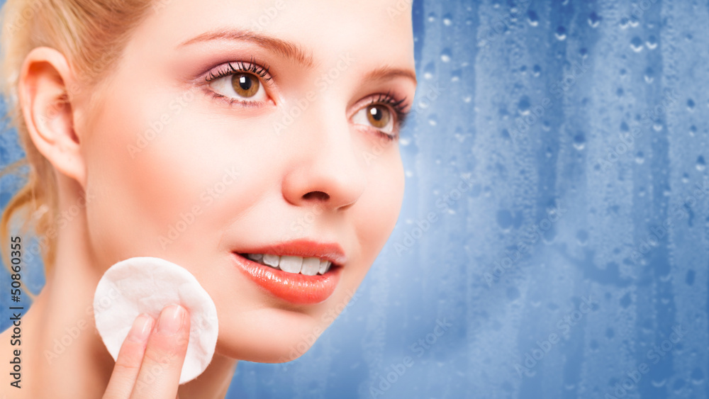 junge blonde Frau beim abschminken