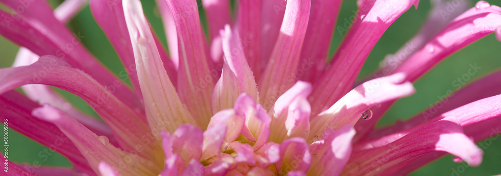Pink dahlia isolated on green blur background.