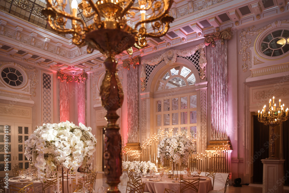 Elegant banquet hall for a wedding party