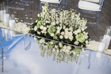 Flowers at an outdoor wedding ceremony, close up
