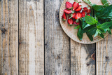 Fresh organic local herb and berry fruit. Sliced strawberries and mint