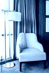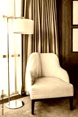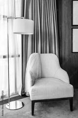 White chair covered with a veil and tall lamp