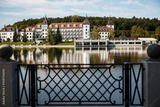 Large house in a forest on a lake