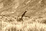 Giraffe walking in the African savanna. Safari in Namibia.