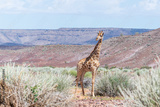 Giraffe walking in the African savanna. Safari in Namibia.