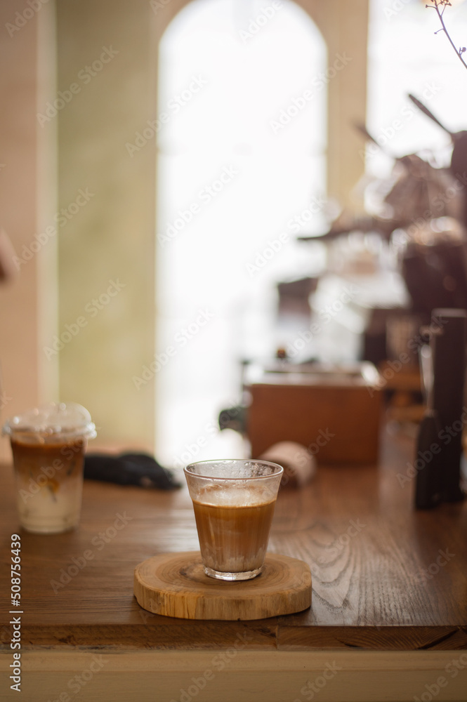hot coffee on a table with cream being poured into it showing the texture