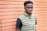 Black male near brick wall