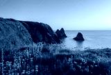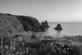 The coast of Ceibwr in Pembrokeshire, Wales with pink sea thrift