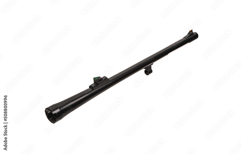 Spare part for gun repair. 12 gauge shotgun barrel isolated on a white back.