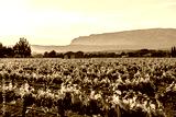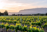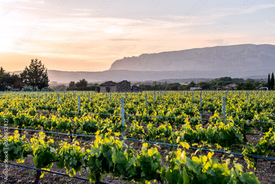 Les vignobles en Provence, au printemps coucher de soleil. Montagne Sainte-Victoire en arrière plan.