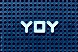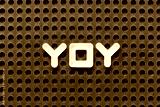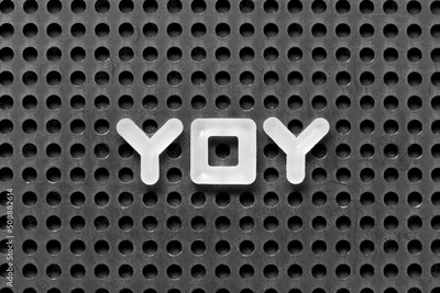 White alphabet letter in word YOY (abbreviation of year over year) on black pegboard background
