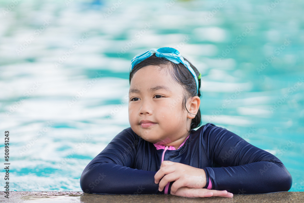 happy children Smiling cute little girl in sunglasses in swimming pool