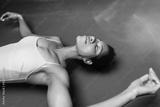 Beautiful middle-aged African American woman floating in tank filled with dense salt water used in meditation, therapy and alternative medicine.