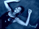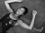 Beautiful middle-aged African American woman floating in tank filled with dense salt water used in meditation, therapy and alternative medicine.