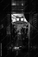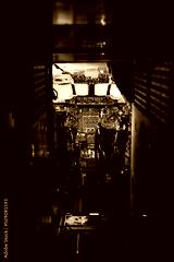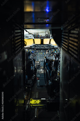 Cockpit of a jumbo jet. detailed view on jet cockpit. Cockpit of a 747 jumbo jet. View of the Flight Deck of a Jumbo Jet in Flight.
