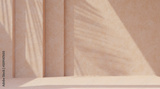 Minimal product placement background with palm shadow on beige plaster wall. Luxury summer architecture interior aesthetic. Boho home room for product platform stage mockup.