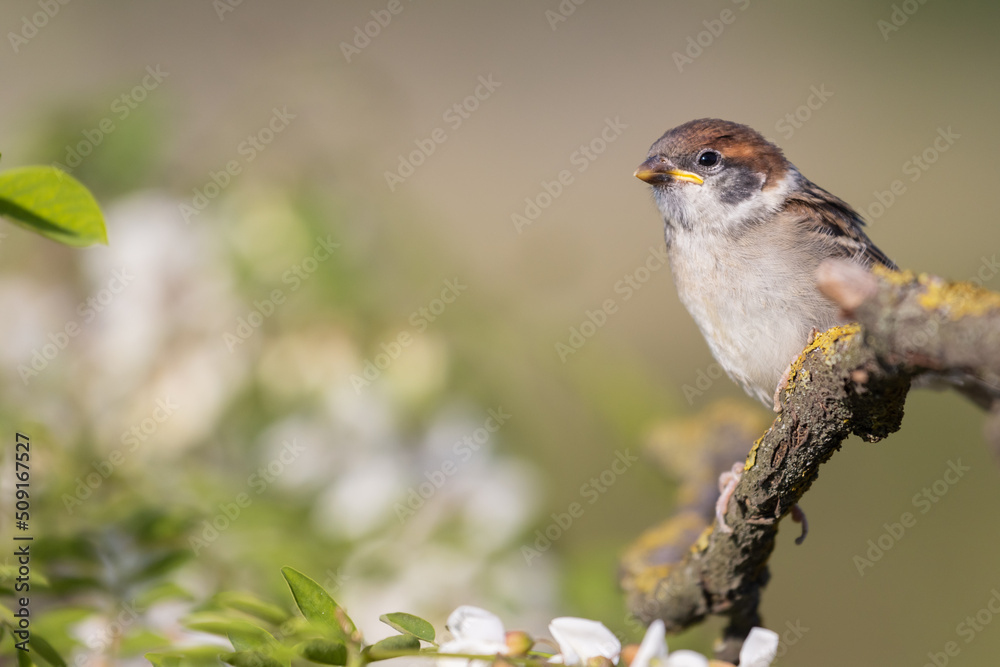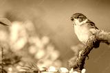 yellowmouth sparrow sits on a branch