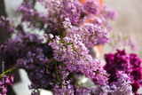 Beautiful bouquet of purple lilacs in a vase inside close up