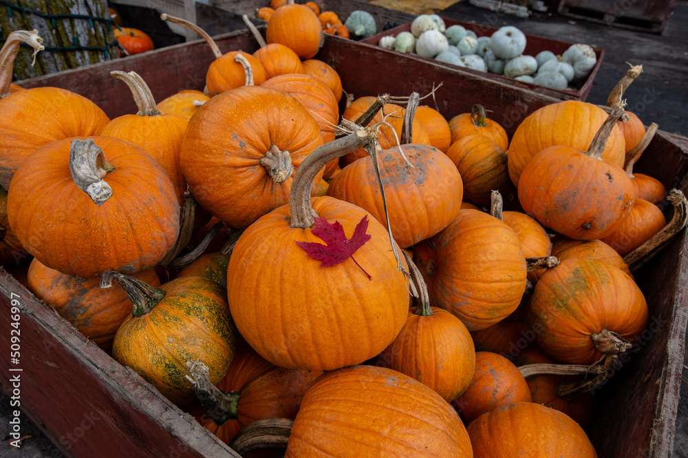 Pumpkin pile close up, pumpkin patch in Canada, Pumpkin harvest, Halloween time