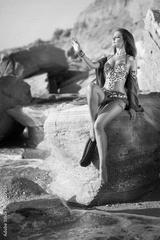 Bellydancer woman dancing active arabian dance. Sexy girl dancer