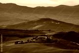 Tuscany landscape panorama at sunrise, Val d'Orcia, Italy