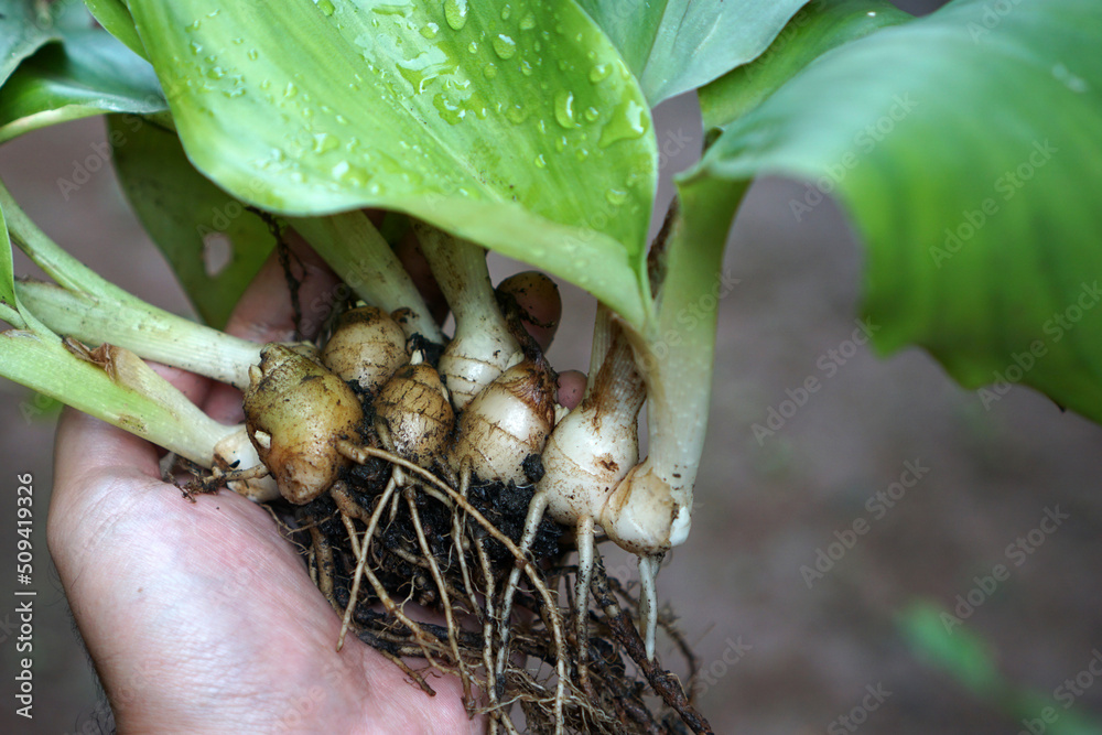 Kaempferia galangal or sand ginger is one of the traditional Asian spices from the rhizome of the plant.