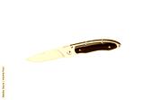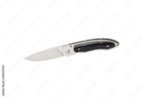 Pocket folding knife isolate on white back. Compact metal sharp knife with a folding blade.