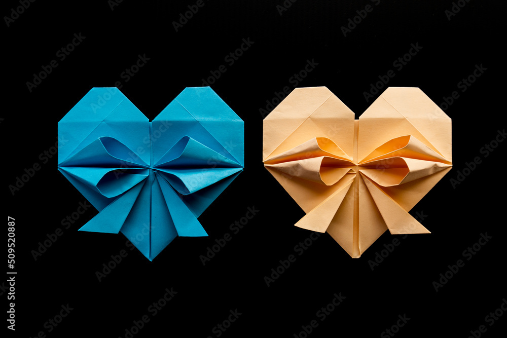colored hearts made of paper on a black background. love concept