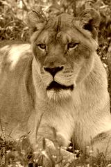 lioness in flowers