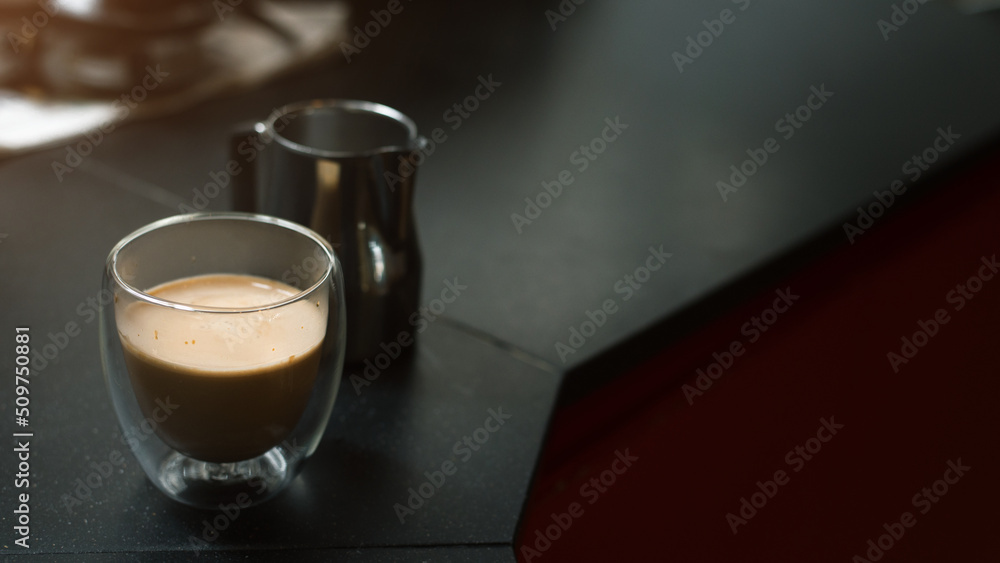 hot coffee on a table with cream being poured into it showing the texture