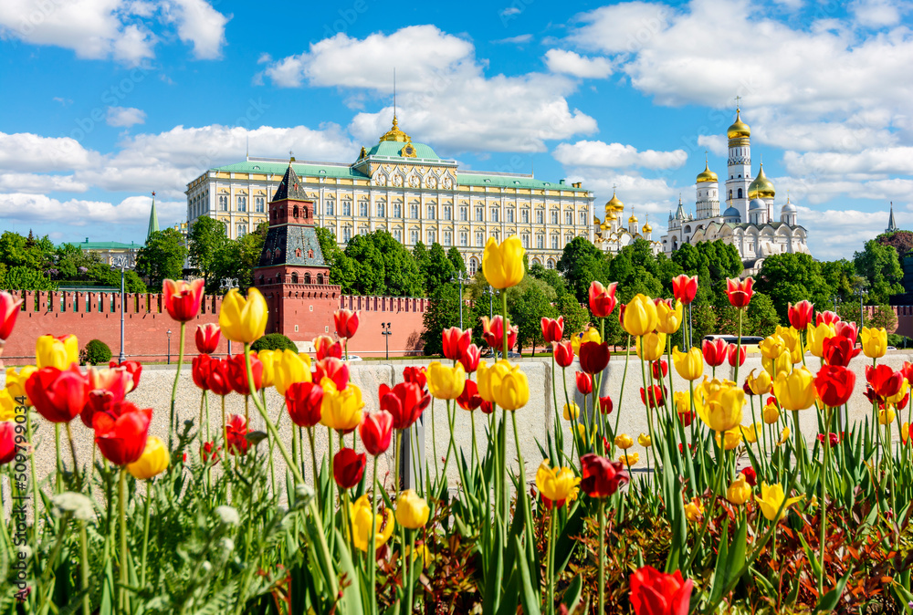 Grand Kremlin palace and towers of Moscow Kremlin in spring, Russia