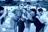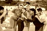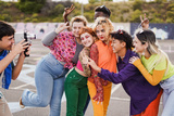 Young multiracial people having fun with vintage video camera outdoor