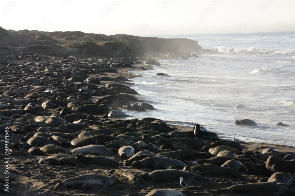 elephant seals rocks on the beach